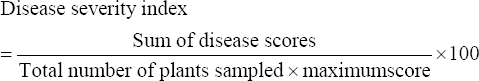 All growth and yield traits were determined according to the procedures used by [7]. Disease incidence for each plot was determined by counting the total number of plants sampled and the number of plants showing symptoms and calculated using the formula below: