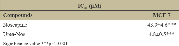 Table 1: IC50 values of noscapine and its urea derivative (urea-Nos) using Hela cell line.