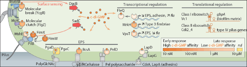 ![]() | Figure 4. Overview of surface-sensing and adaptation mechanisms. Adopted from Laventie and Jenal [121]. [Click here to view] |
