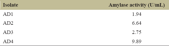 Table 1: Initial amylolytic activity of amylase-producing isolates after incubation of 24 h at 37°C