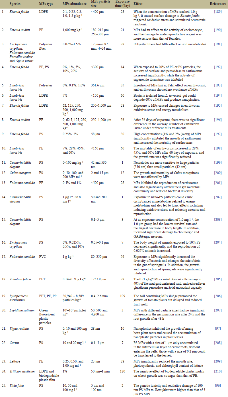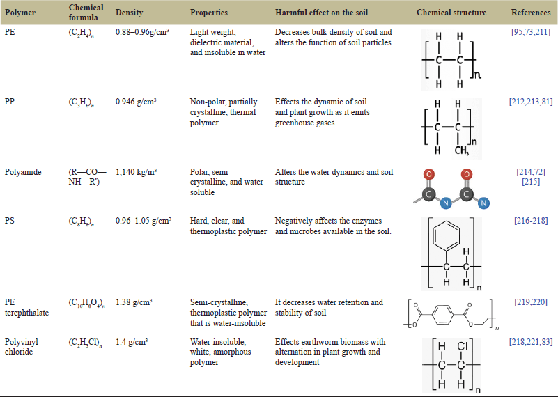 ![]() | Table 4. Brief insight into the prominent MPs present within the soil ecosystem. [Click here to view] |