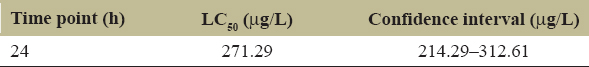 | Time point (h) | LC50 (mg/L) | Confidence interval (mg/L) |
