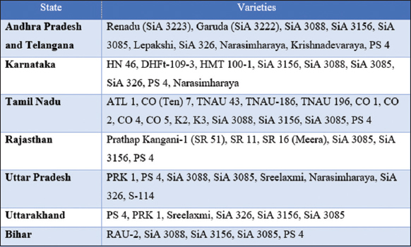 | Figure 3: Improved foxtail millet varieties [22]. [Click here to view] |