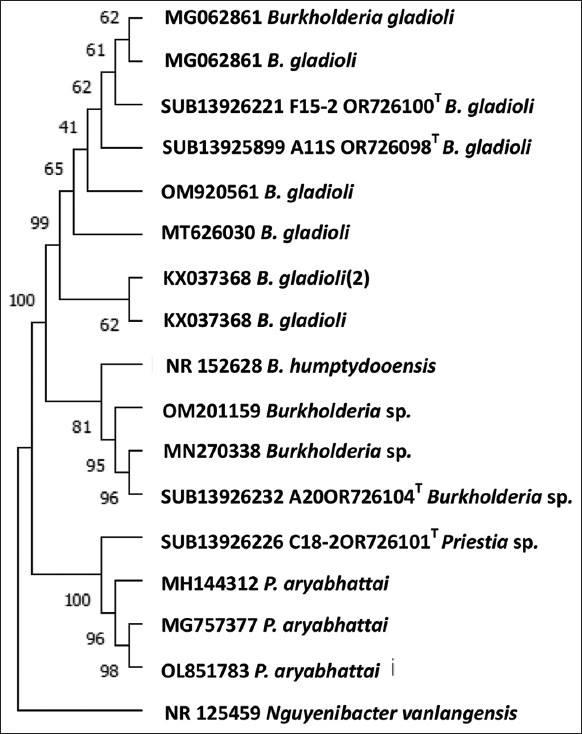 | R111 (5 m) | Burkholderia gladioli | NBRC13700 | SUB13925899 A11S OR726098 | 99.50 |