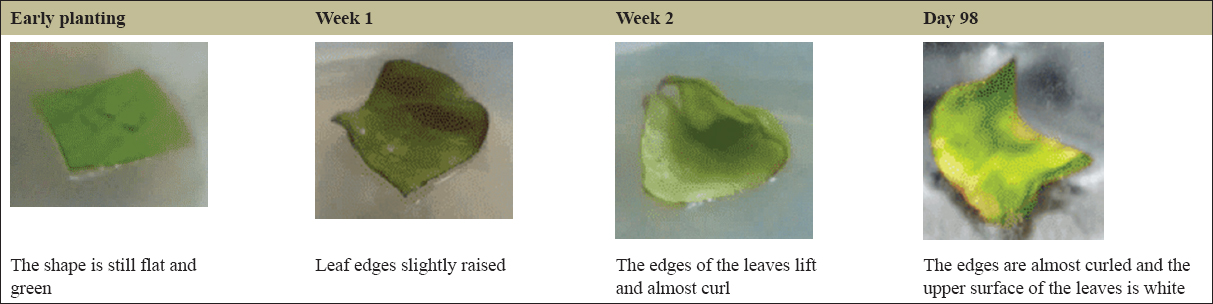 | Figure 1: The growth of Nampu leaf explants on Murashige and Skoog medium. [Click here to view] |