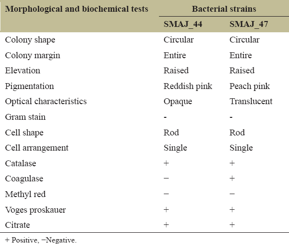 Table 1: Morphological and biochemical characteristics of bacterial isolates.