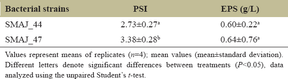 Table 5: Phosphate solubilization index (PSI) and exopolysaccharide (EPS) production by bacterial strains.