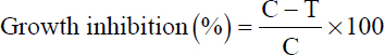 Where C is the OD of the control and T is the OD in the presence of HM.