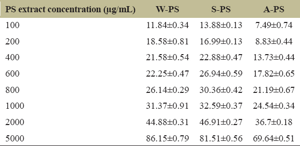 Table 1: ABTS radical scavenging activity (%) of PS extracts.