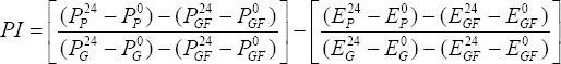 pGF0 and P24GF are the OD600 values of probiotic strains measured in glucose-free media (PGF) at 0 and 24 h, respectively.