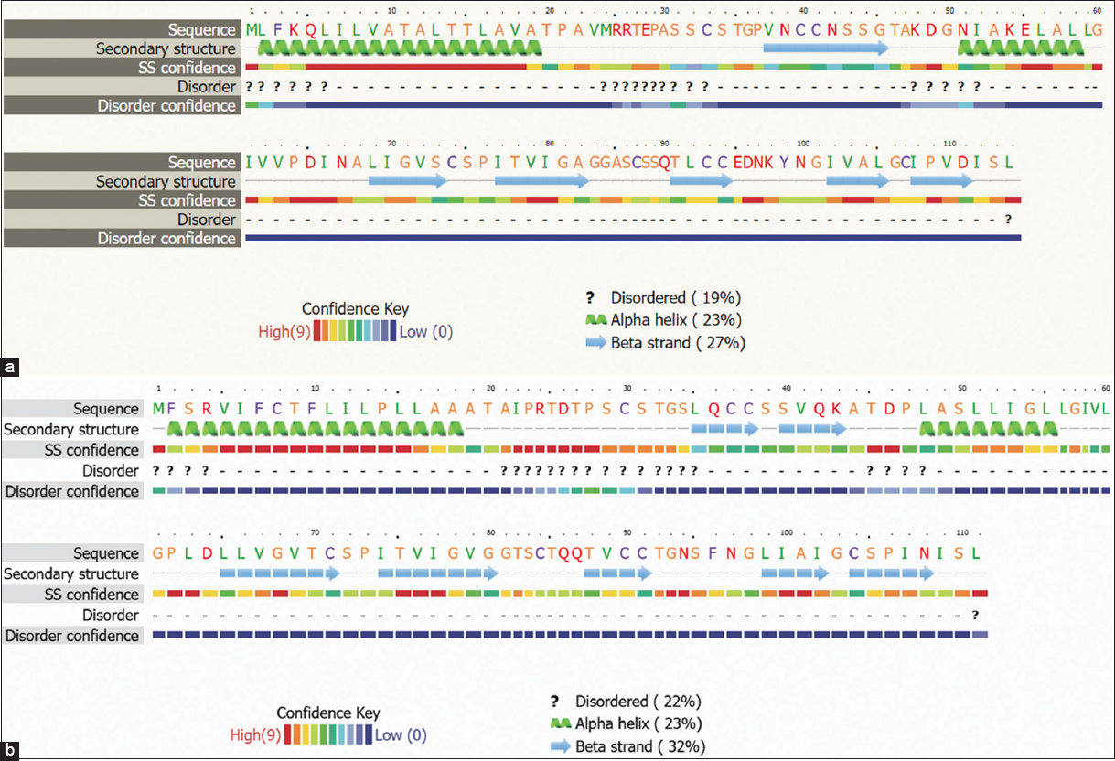 | Figure 4: (a) Predicted Secondary structure of Hydph6. (b) Predicted Secondary structure of Vmh2