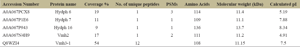 Table 1: Identification of Hydrophobins from mycelia of Pleurotus ostreatus.