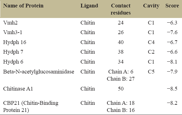 Table 4: Molecular Docking analysis of hydrophobins and chitin.