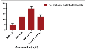 | Figure 2: The number of shoots in different concentration of benzyl aminopurine. [Click here to view] |