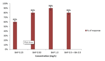 | Figure 3: Percentage response of shoot formation in different concentration of benzyl aminopurine. [Click here to view] |