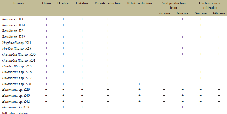 | Table 2: Phenotypic characteristics of nitrate and NiR positive isolates. [Click here to view] |