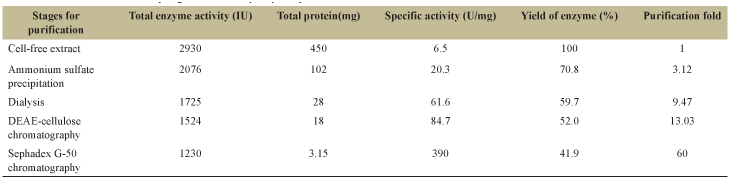 | Table 2: Purification table of L-asparaginase from Streptomyces sp. [Click here to view] |