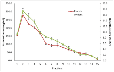 | Figure 4: Elution profile of L-asparaginase on diethylaminoethyl-cellulose. [Click here to view] |