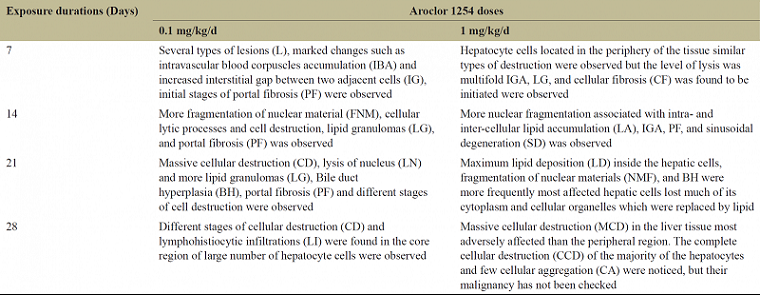 Table 1: Histopathological observations of the liver of mice after Aroclor 1254 exposure