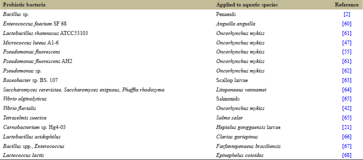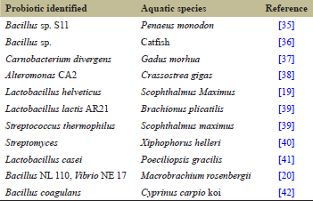 | Table 3: Applications of probiotics as pathogen inhibitor in aquaculture [Click here to view] |