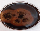The clear zone of hydrolysis around the selected strain is shown in Figure 1. When subjected to pectinase production, orange peel produced the highest pectinase activity as well as total protein concentration (Figure 2). Maximum pectinase activity (1.75 U/ml) was observed at 6 days of incubation with a steady decline of activity after 6 days (Figure 3a). The best moisture content for A. fumigatus (65%) produced a pectinase activity of 2.3 U/ml (Figure 3b). Furthermore, highest pectinase production was also observed at 1.5 ml inoculum volume (Figure 3c) and 3% salt concentration (Figure 3d), respectively. Similar observations on the orange peel as an excellent carbon source for pectinase production have been reported [29,30]. The reason for the highest pectinase activity using orange peel as solid substrate could be the high percentage of pectin found in the cell wall of the peel. Several works have been carried out to show that pectinolytic fungi produce pectinase maximally between 3 and 6 days incubation period. The ideal substrate humidity for pectinase production by Aspergillus foetidus was reported to be between 80% and 90%.