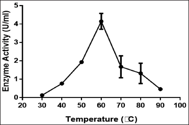 | Figure 7: Effect of temperature on the activity of Aspergillus fumigatus pectinase [Click here to view] |