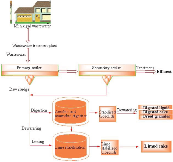 ![]() | Figure 1: Production of biosolids in water industries. [Click here to view] |