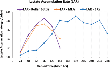 | Figure 5: Lactate accumulation rate of bioreactor run compared with control devices. [Click here to view] |