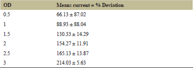 | Table 2: Mean currents and random errors based on the variation of OD. [Click here to view] |