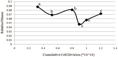 ![]() | Figure 3: Fitness profile of the KEI10 isolate as obtained after Adaptive laboratory Evolution in increasing concentration of ethanol. a–c represents the percentage of alcohol at which the respective fitness level is achieved. (a) 1.6%, (b) 3.2%, and (c) 6.4%. [Click here to view] |