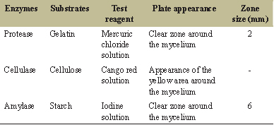 After incubation of various agar plates for 8 days at 28°C for the industrial enzymatic tests, the following results were obtained [Table 1]: