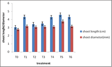 | Figure 1: Changes in shoot length/stem diameter in cucumber seedling treated with chicken manure tea and vermicompost; (T0): Without any fertilizer, (T1): Chemical fertilizer (20-20-20), (T2, and T3): Vermicompost (20 and 30% [V/V]) and (T4, T5, and T6): Chicken manure tea (25, 50, and 75% [V/V]); (error bar indicate standard deviation) [Click here to view] |