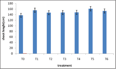 ![]() | Figure 5: Changes in shoot length in mature cucumber treated with chicken manure tea and vermicompost; (T0): Without any fertilizer, (T1): Chemical fertilizer (20-20-20), (T2, and T3): Vermicompost (20 and 30% [V/V]) and (T4, T5, and T6): Chicken manure tea (25, 50, and 75% [V/V]); (error bar indicate standard deviation) [Click here to view] |
