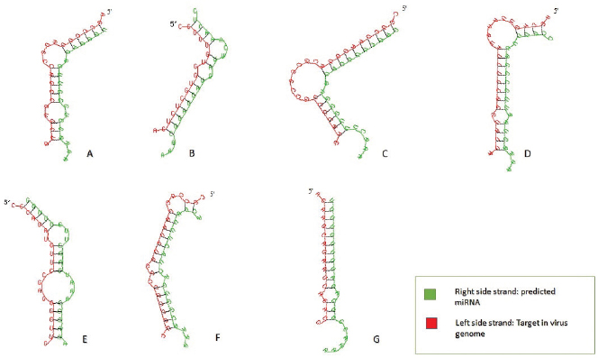 These selected miRNAs after the prediction of potential pre-miRNA were used to predict their target in virus genome using psRNATarget server [25] with the following parameters: