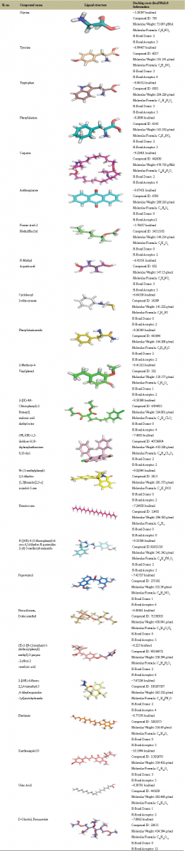 | Table 3: Name of the phytochemicals with their 3D structure and docking scores against sickle cell protein (2HBS). [Click here to view] |