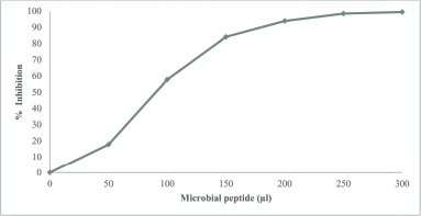 The effect of temperature was studied by incubating the aliquot to different temperatures, namely, 10°C, 20°C, 30°C, and 40°C in a heat block for 20 minutes. A 50 µl AMP aliquot was mixed with 50 µl 20 mM Phosphate Buffered Saline (pH 7.8) and kept for 5 minutes, followed by heating on a heating block at different temperatures for 10 minutes; 50 µl AMP aliquot from each incubated temperature was assayed for antibacterial assay.