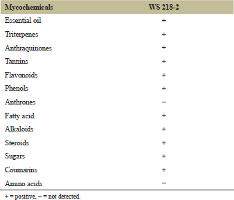 ![]() | Table 3: Mycochemical composition of mycelia of WS218-2 strain of P. cystidiosus. [Click here to view] |