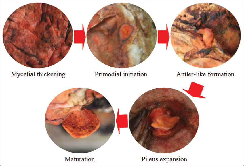![]() | Figure 4: The fruiting body development of Pycnoporus sanguineus. [Click here to view] |