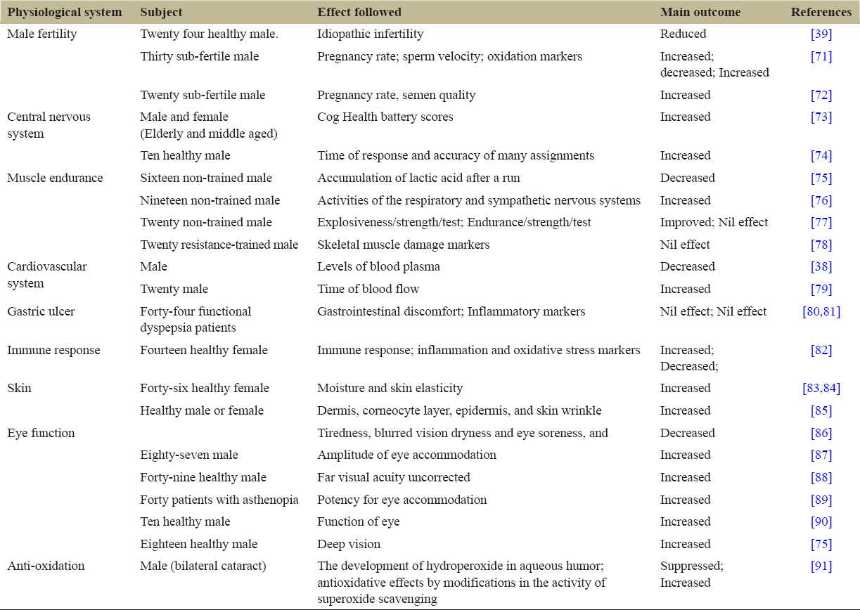 Physiological systemSubjectEffect followedMain outcomeReferences