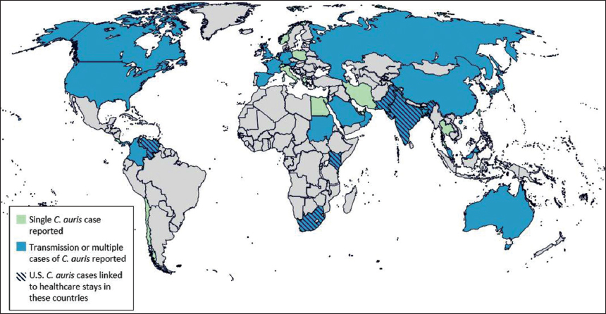 ![]() | Figure 1: Countries from which C. auris cases have been reported as of July 31, 2020. Source: [Click here to view] |