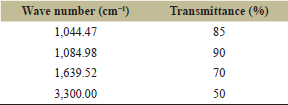 ![]() | Table 3: FTIR results. [Click here to view] |