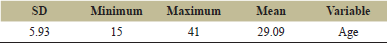 ![]() | Table 1: Distribution of age in women. [Click here to view] |