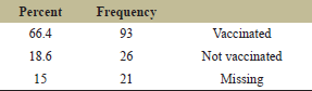 ![]() | Table 3: Frequency distribution of rubella vaccination in studied group. [Click here to view] |