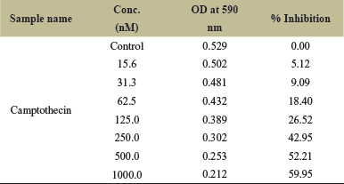 ![]() | Table 2. Camptothecin result on SCC-9 cell line. [Click here to view] |