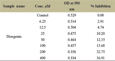 ![]() | Table 3. Diosgenin result on SCC-9 cell line. [Click here to view] |