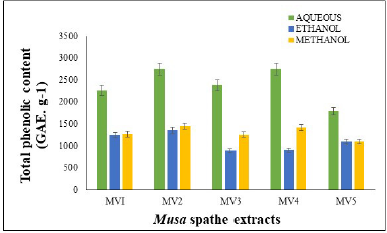 ![]() | Figure 1: Concentration of total phenol in Musa spatte extracts. [Click here to view] |