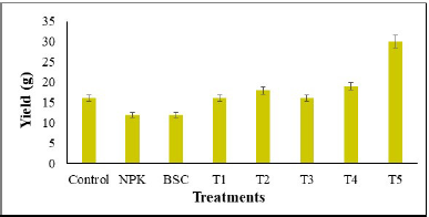 ![]() | Figure 13: Yield of treated rice plant of cultivar CO-51 with BSC and Musa spathe extracts. [Click here to view] |