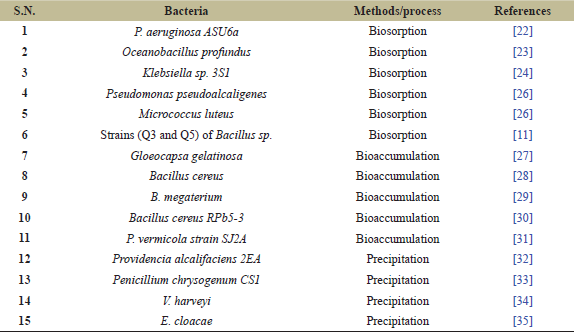 ![]() ![]() | Table 1: Lead resistant bacteria and their methods to resist lead. [Click here to view] |
