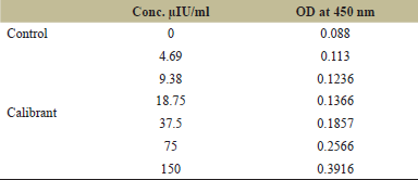 ![]() | Figure 2: Insulin calibration graph. [Click here to view] |