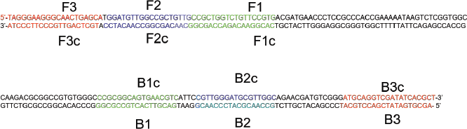 For total genomic DNA isolation, each currency note was gently washed with Tween-80 solution (0.05%). This collected solution was centrifuged at 10,000 rpm for 10 minutes to obtain a pellet. Chelex-100 solution containing 10% Chelex-100 resin, 0.03% Triton X-100, and 0.3% Tween 20 was added to the pellet [21]. It was mixed and incubated in a dry bath at 90°C for 30 minutes. Then, it was allowed to cool down to room temperature and centrifuged at 10,000 rpm for 5 minutes. The supernatant was carefully transferred to a fresh tube and stored in a deep freezer for further use. Five microliters of the supernatant was used as template for LAMP reaction to specifically amplify target gene of M. tuberculosis. The primers were used to amplify 190 bp region of sdaA gene of M. tuberculosis according to the LAMP reaction mixture described by Nimesh et al. [22–24]. The primer sequences (Patent Number 362827) and the target region are shown in the Table 1 and Figure 1. The specificity of these primers has been tested with various reference species/strains of mycobacteria [23,24]. Genomic DNA of M. tuberculosis was used as positive control and no template control were included with each set of specimens for amplification.